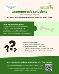 Osteoporosis Solutions will be at Queens Park Medical Centre on 23rd and 24th March! Are you due for your Bone Density Check? Are you 70
